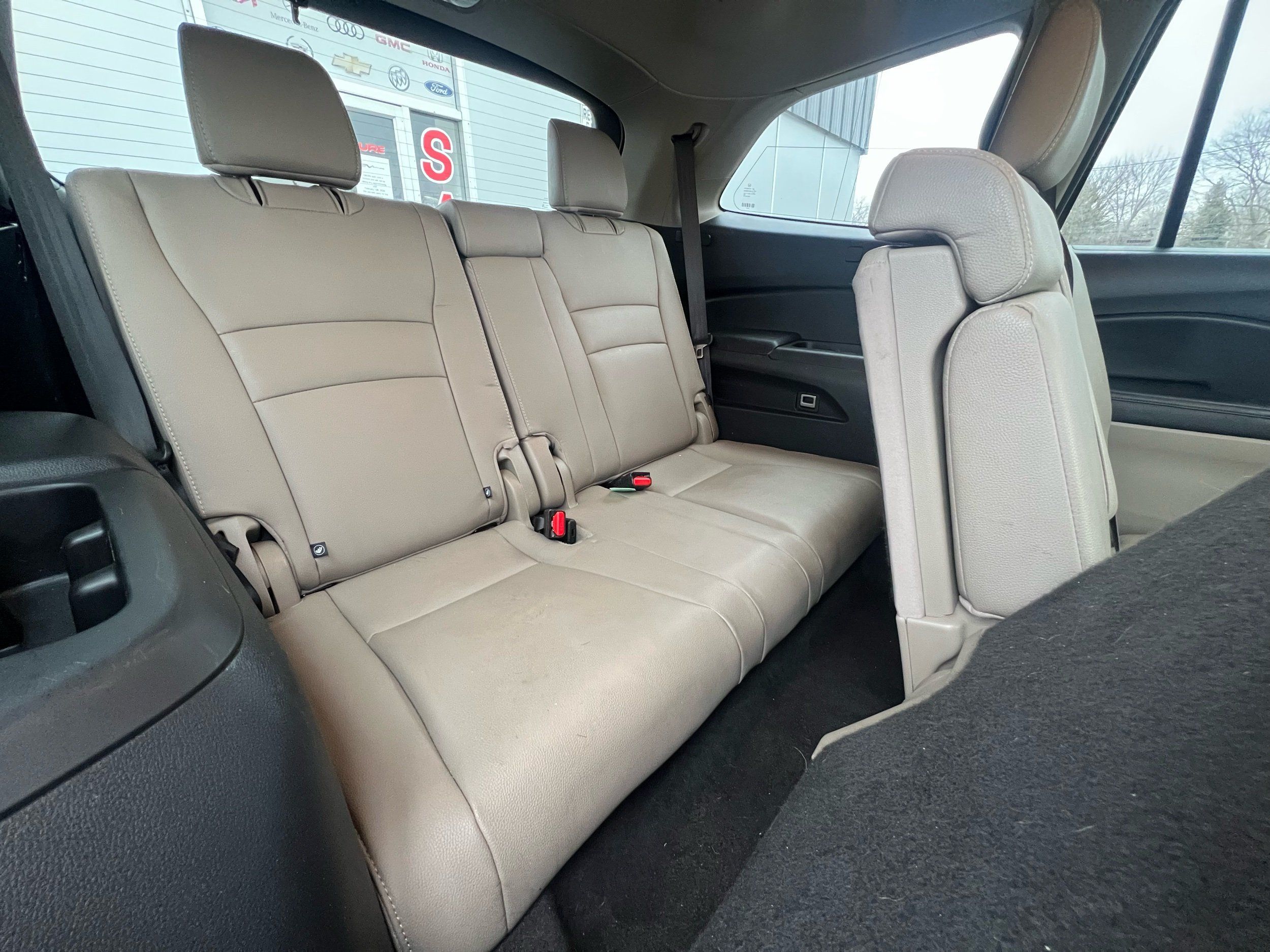 Third-row seatback upholstery: Carpet third-row seatback upholstery