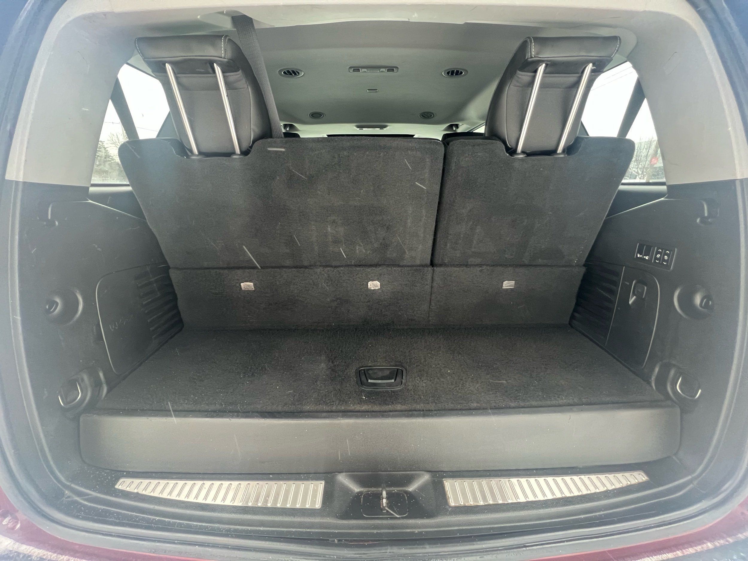 Third-row seatback upholstery: Carpet third-row seatback upholstery